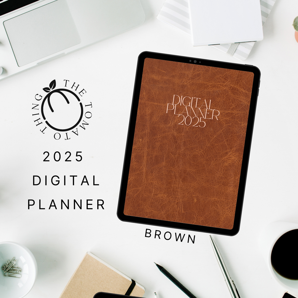 2025 Simple and Classic Digital Planner in Brown Leather | Monthly, Weekly, Checklist, Goals, iPad Planner, Hyperlinked Planner, Goodnotes Planner